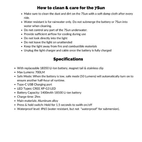 Safe mode: When the battery is low, it will turn to safe mode (50 lumens) automatically to ensure another 0.5 hours of runtime
