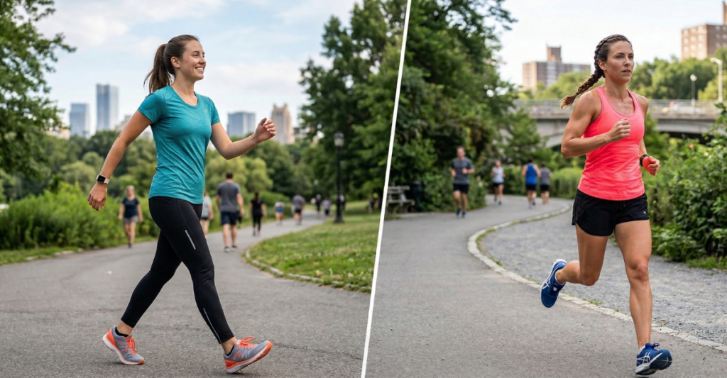 If you’re new to exercise or returning after a long break, walking might be the best place to start. It allows you to build a fitness base with lower risk of injury. As your fitness improves, you can gradually increase your walking speed or introduce short running intervals.